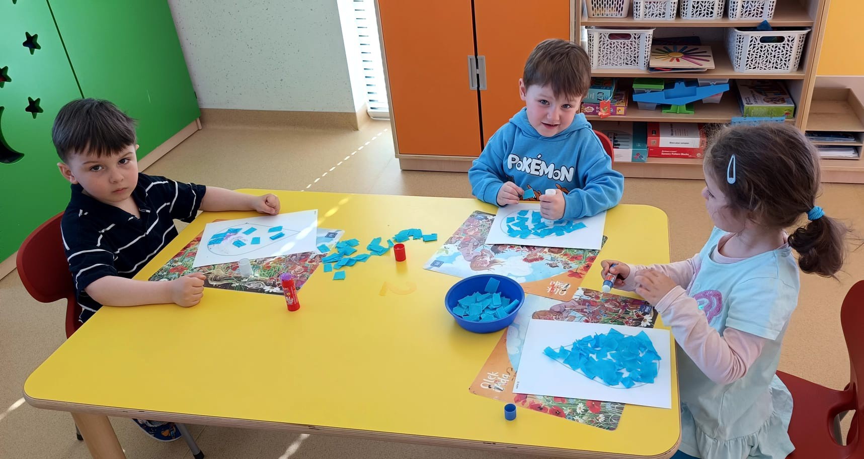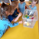 WTOREK (Oszczędzamy wodę): Wskoczyliśmy w niebieskie ciuchy i rozmawialiśmy o wodzie. Teraz każdy u nas wie, że każda kropla ma znaczenie i nie ma lania wody bez potrzeby!