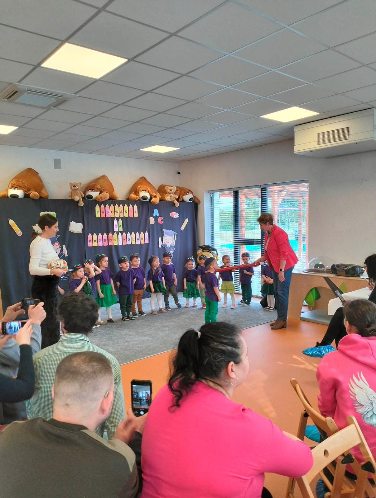 Sala wypełniła się radosnym śpiewem i tańcem. Choć dla wielu był to pierwszy tak ważny występ, „Jagódki” poradziły sobie fantastycznie! Dzieci z wielkim przejęciem recytowały wierszyki, udowadniając, że są już gotowe na wielką przedszkolną przygodę. 🎶💃