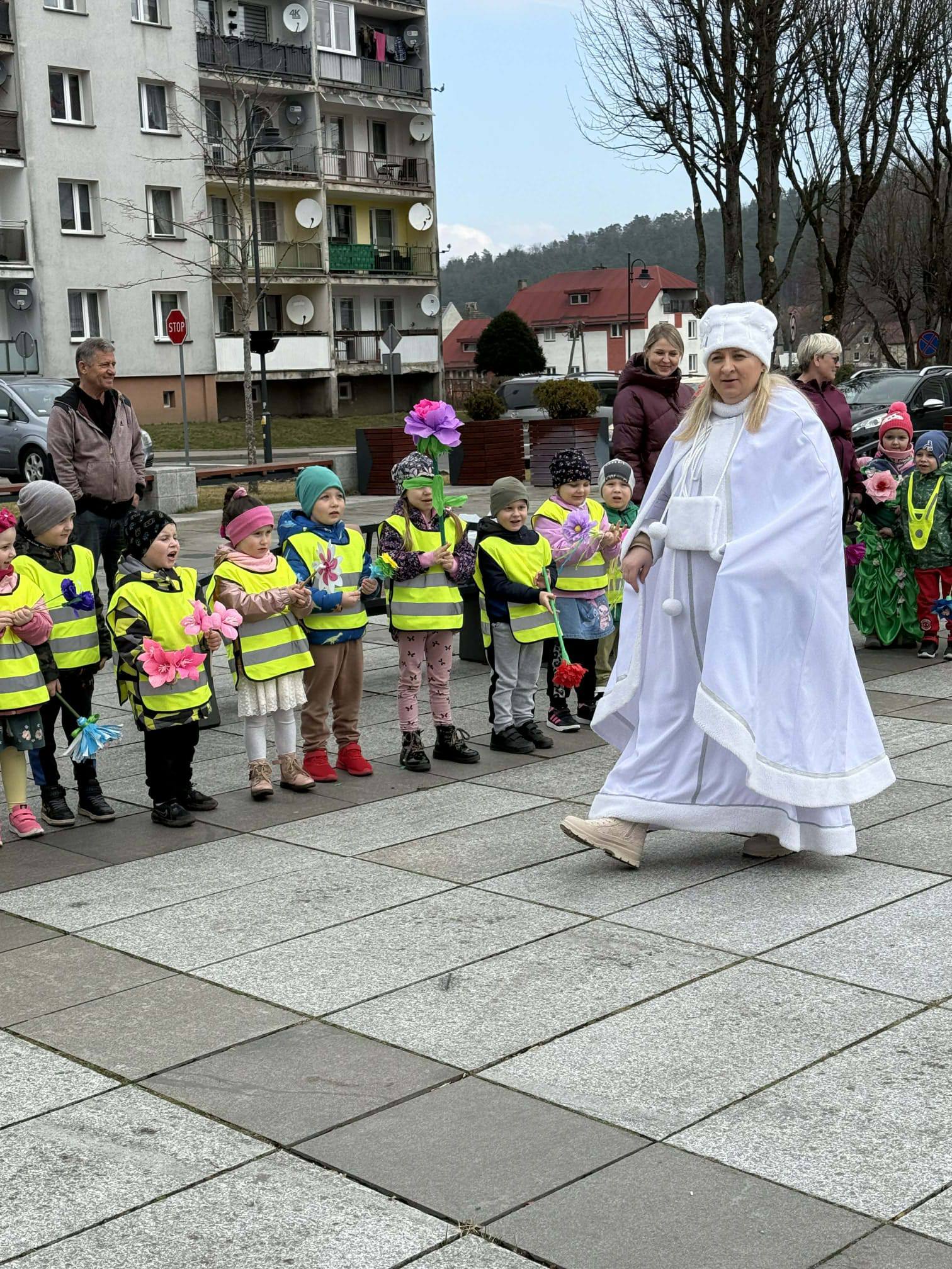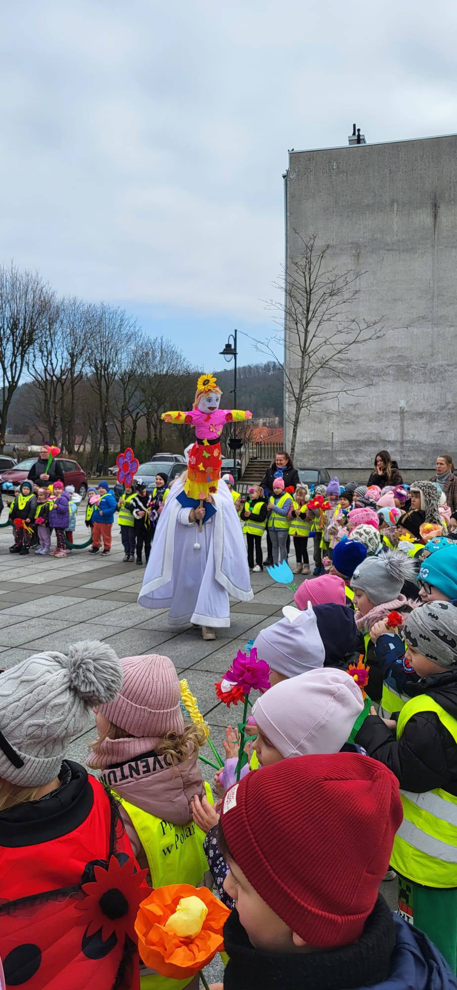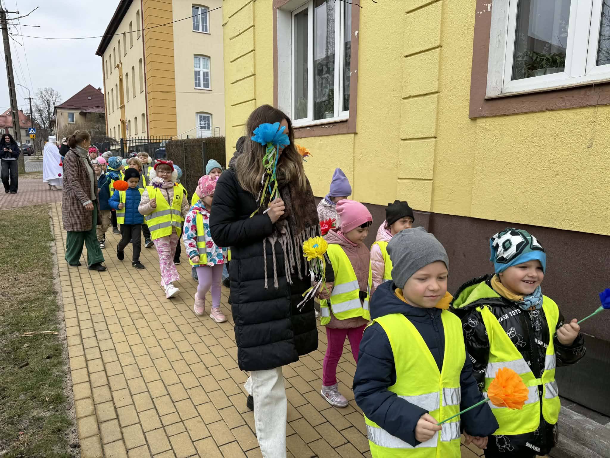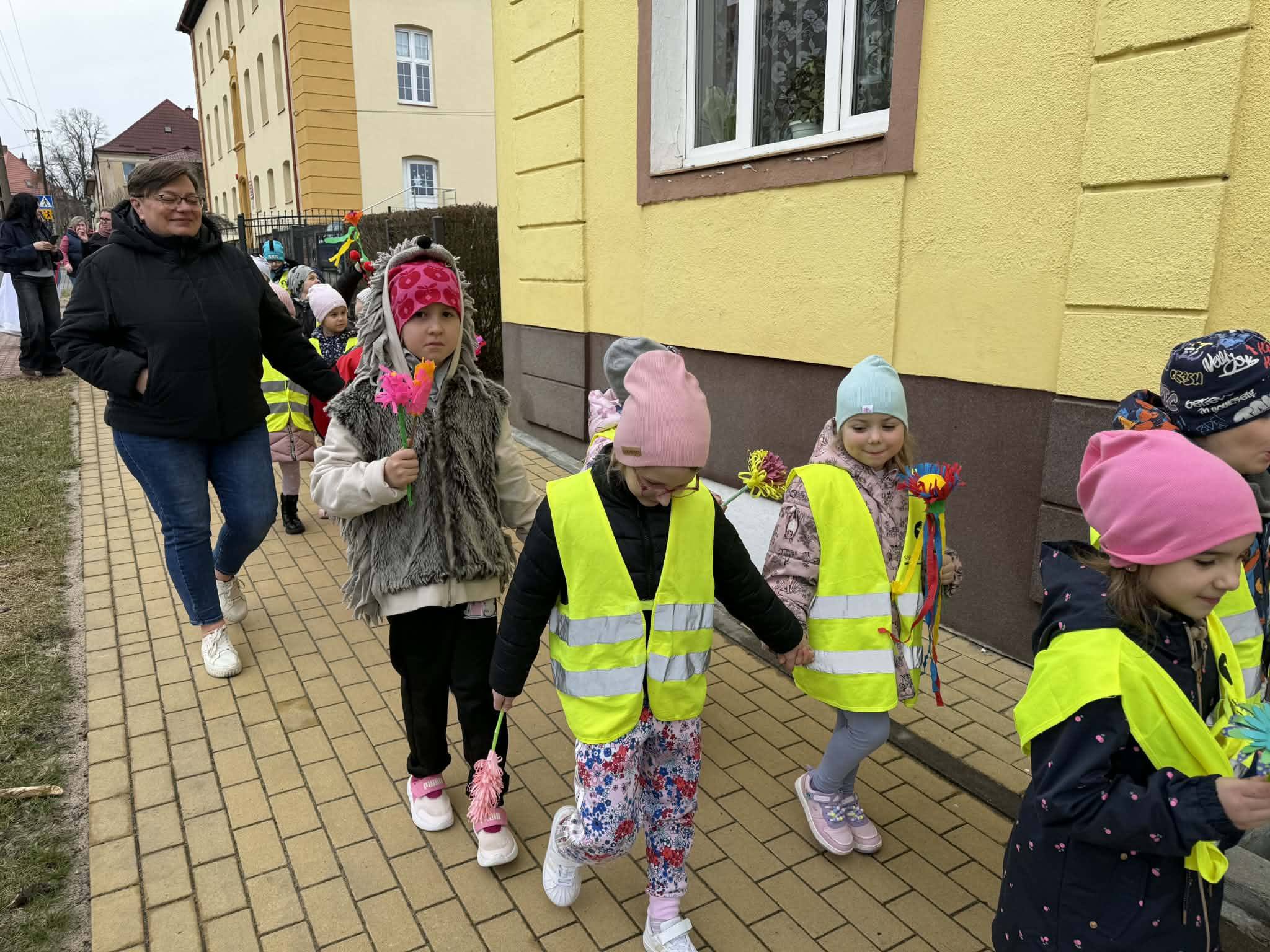 Powitanie wiosny przez przedszkolaków i żłobkowiczów było radosnym i pełnym energii wydarzeniem. Dzieci wzięły udział w barwnym pochodzie ulicami Polanowa, podczas którego śpiewały wiosenne piosenki i niosły kolorowe ozdoby. Wspólnie pożegnaliśmy zimę, a z uśmiechem i entuzjazmem powitaliśmy nadchodzącą wiosnę. Całemu wydarzeniu towarzyszyła wspaniała atmosfera i dużo radości.