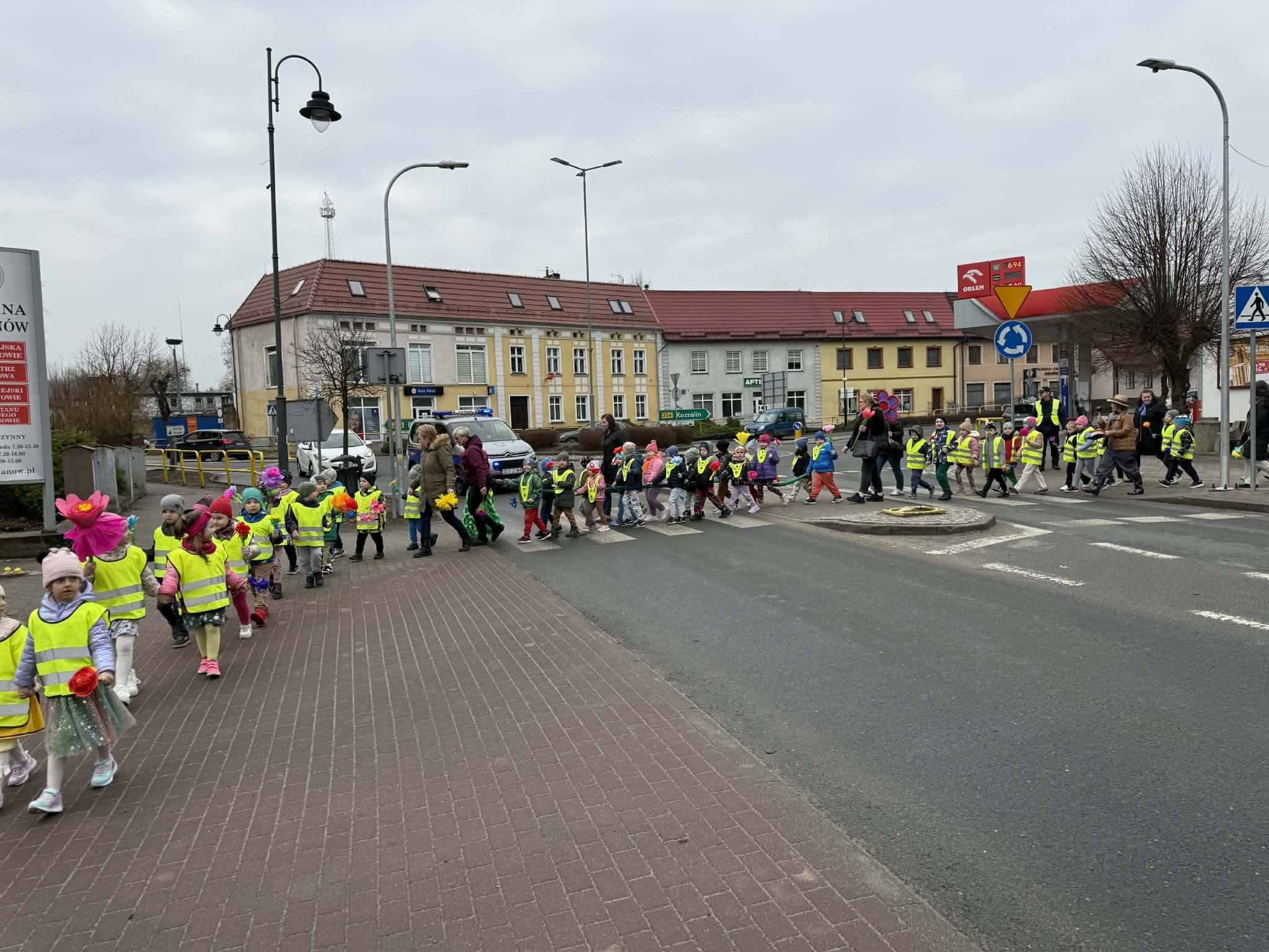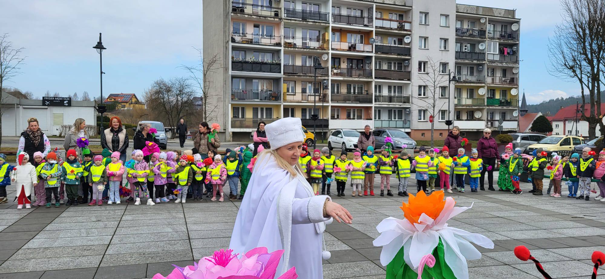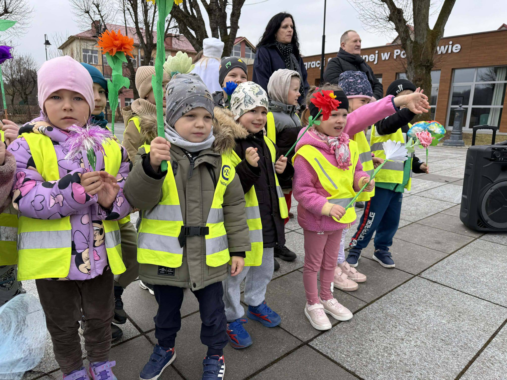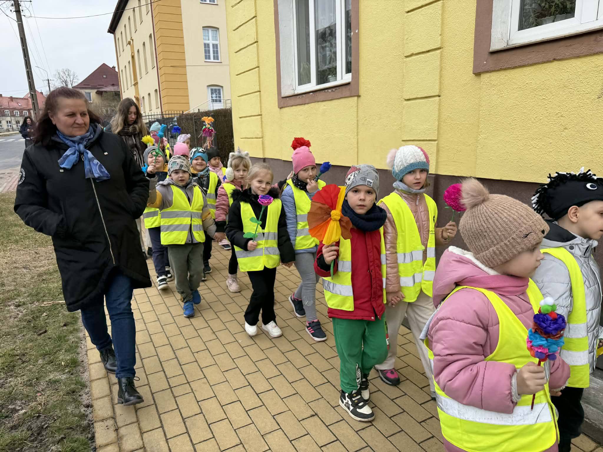 Powitanie wiosny przez przedszkolaków i żłobkowiczów było radosnym i pełnym energii wydarzeniem. Dzieci wzięły udział w barwnym pochodzie ulicami Polanowa, podczas którego śpiewały wiosenne piosenki i niosły kolorowe ozdoby. Wspólnie pożegnaliśmy zimę, a z uśmiechem i entuzjazmem powitaliśmy nadchodzącą wiosnę. Całemu wydarzeniu towarzyszyła wspaniała atmosfera i dużo radości.