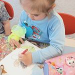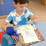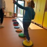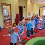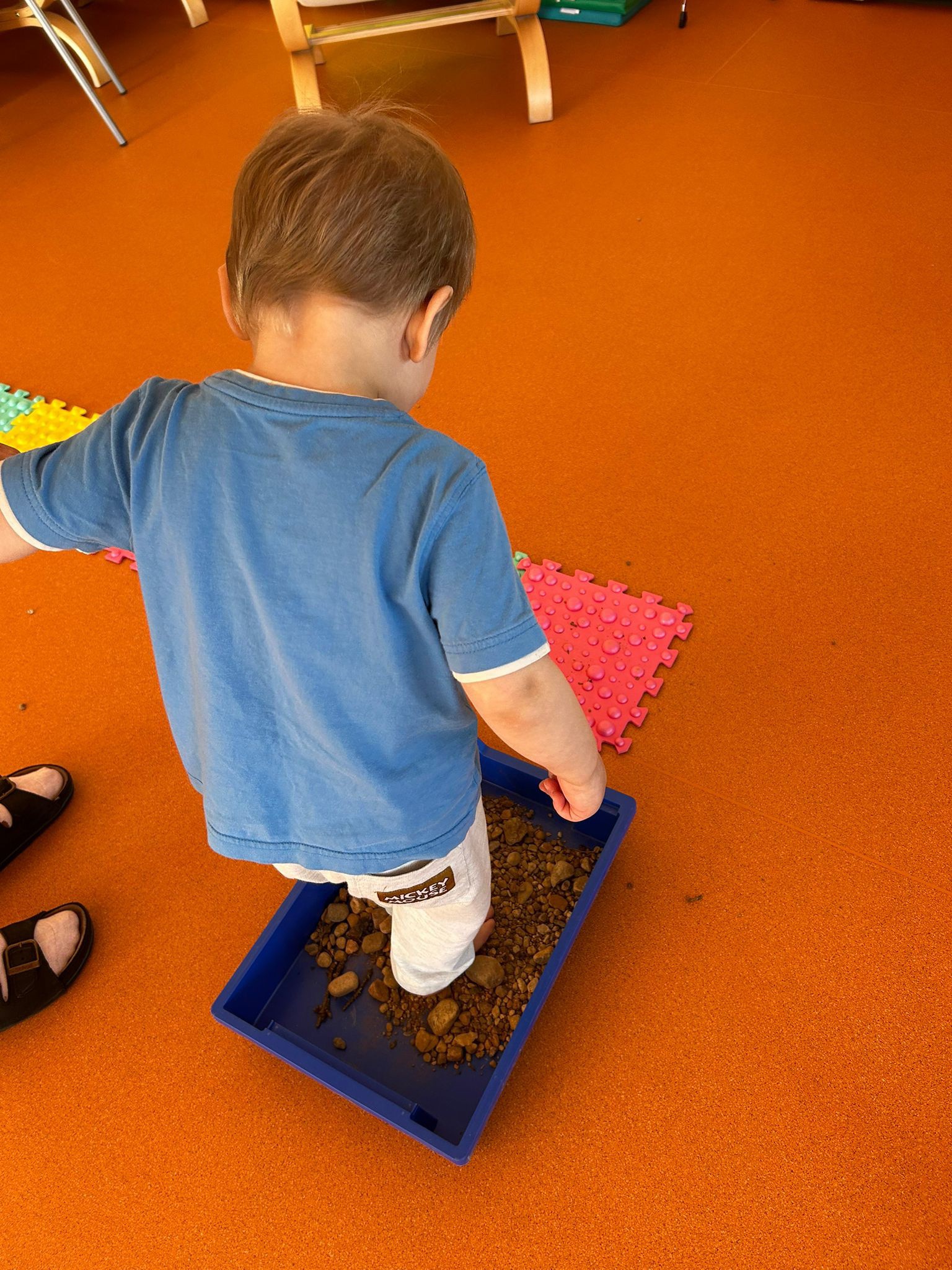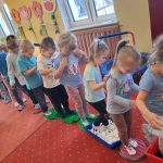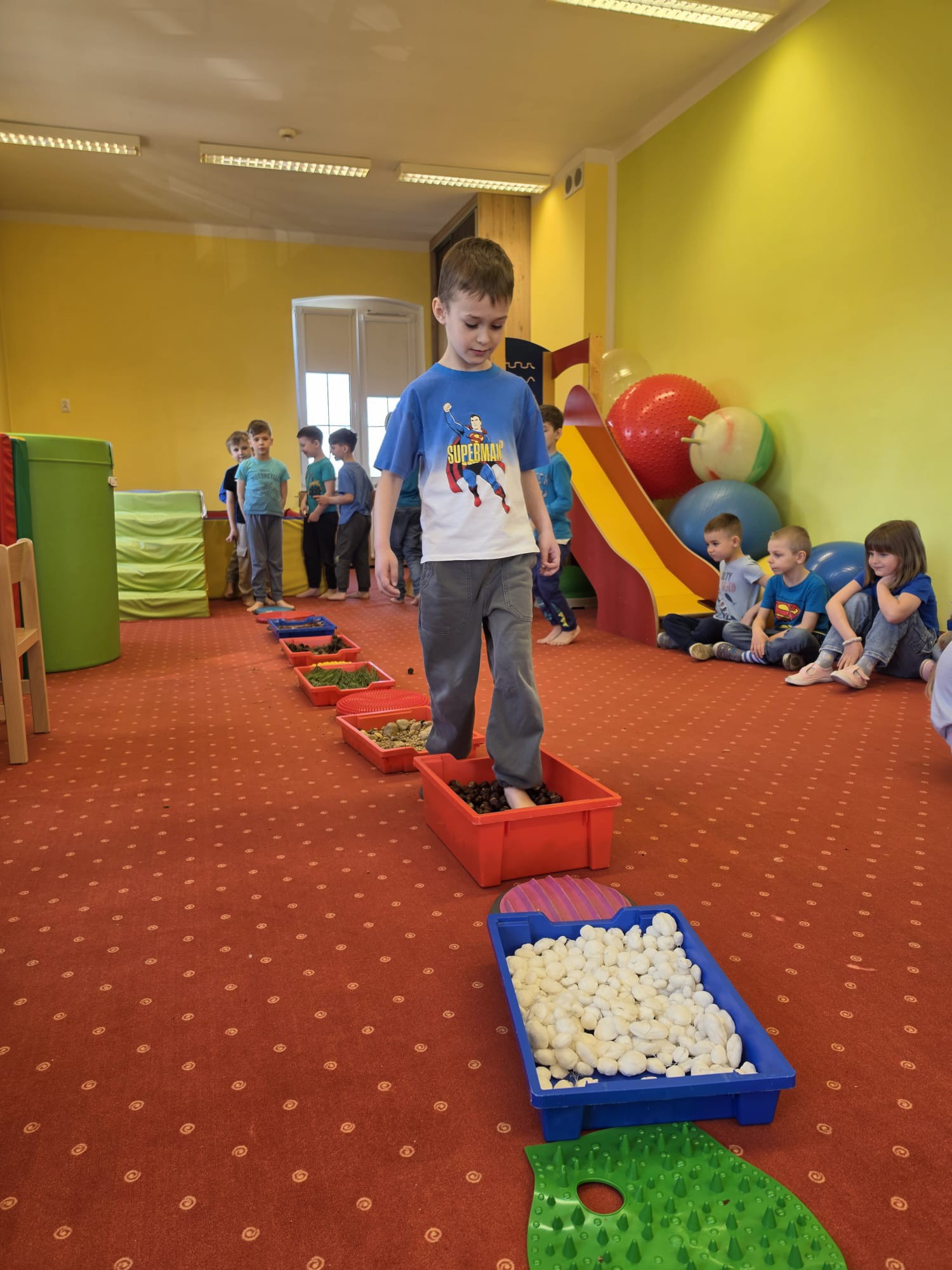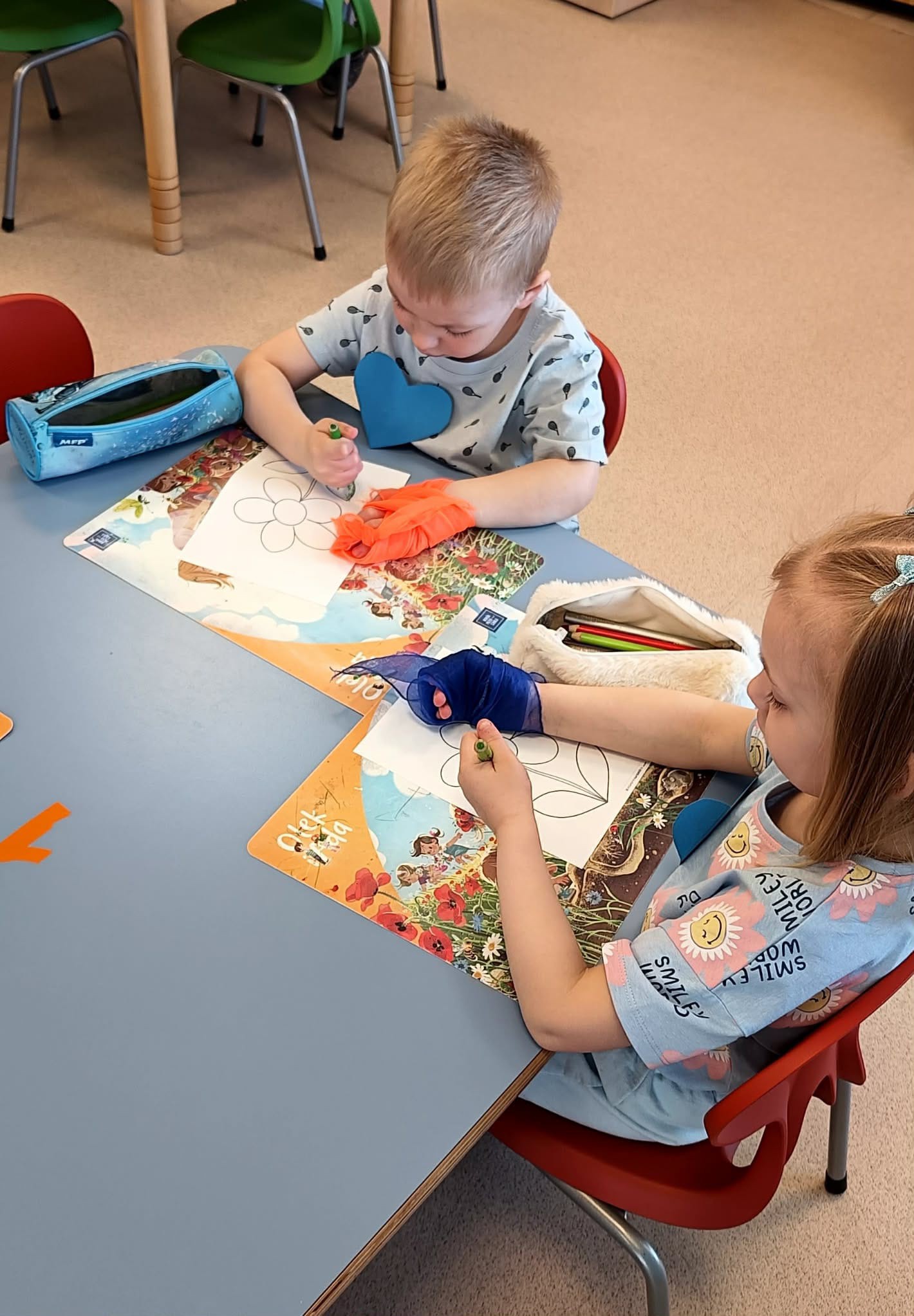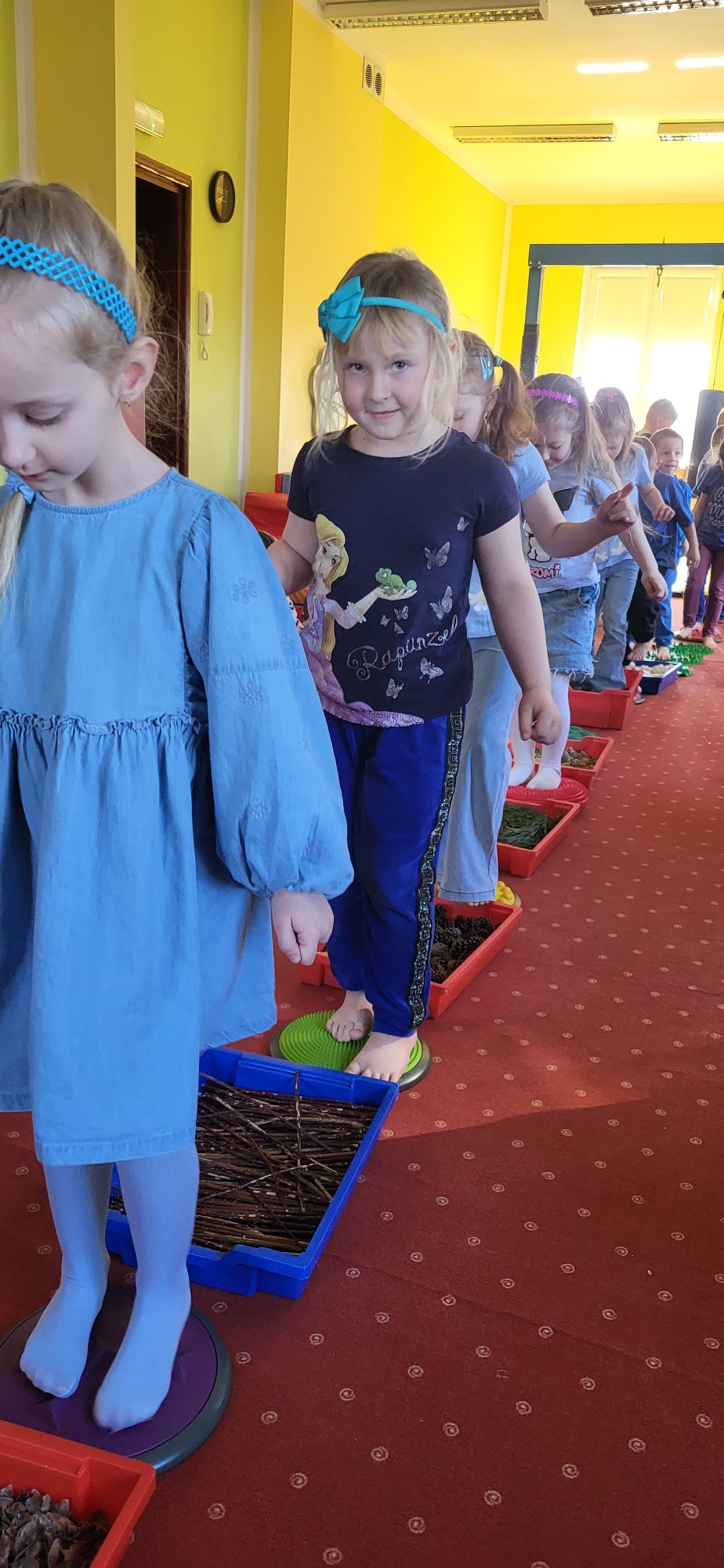 Kolorowanie niedominującą ręką oraz spacer po ścieżce sensorycznej.