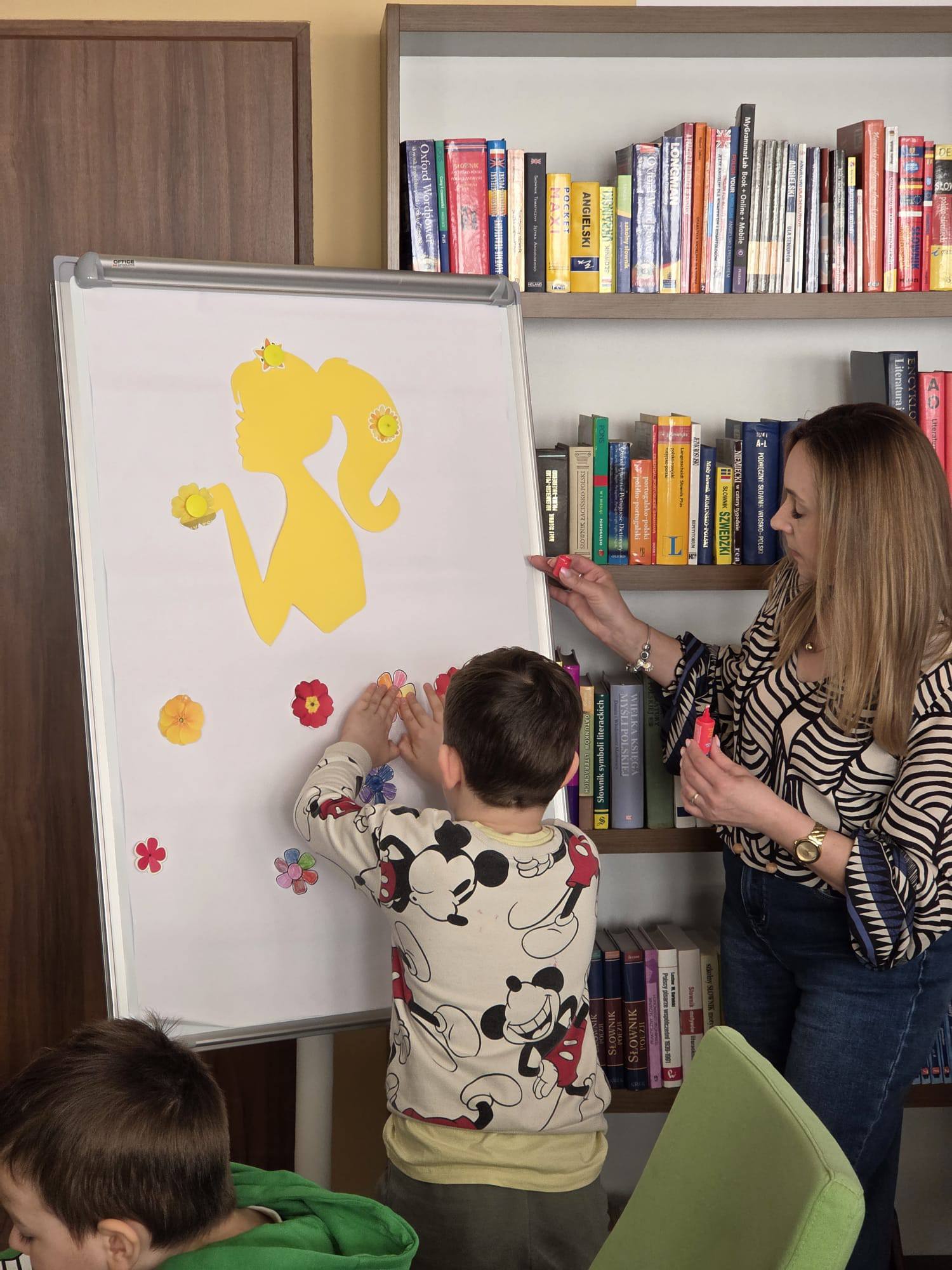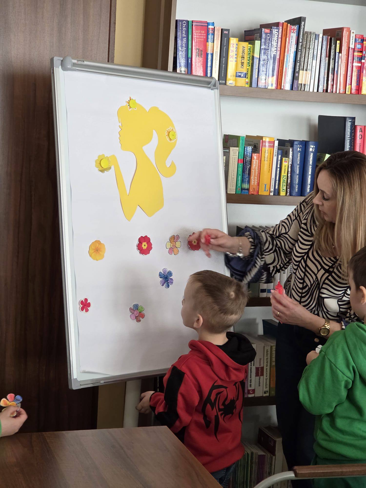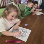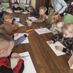 Omówiliśmy również pierwsze oznaki wiosny. Zainspirowani rozmową zabraliśmy się za tworzenie kolorowych kwiatków na sukienkę dla Pani Wiosny.
