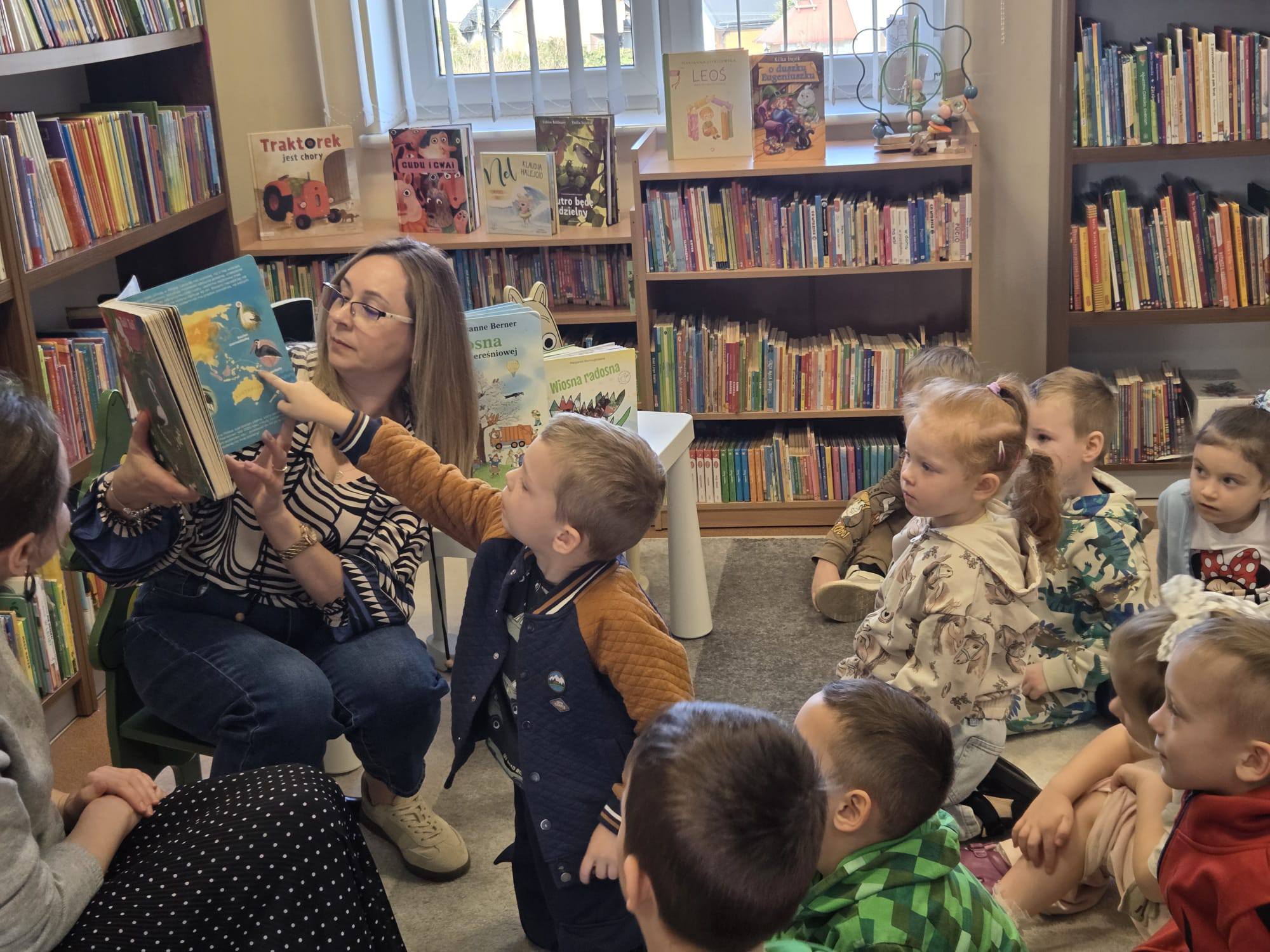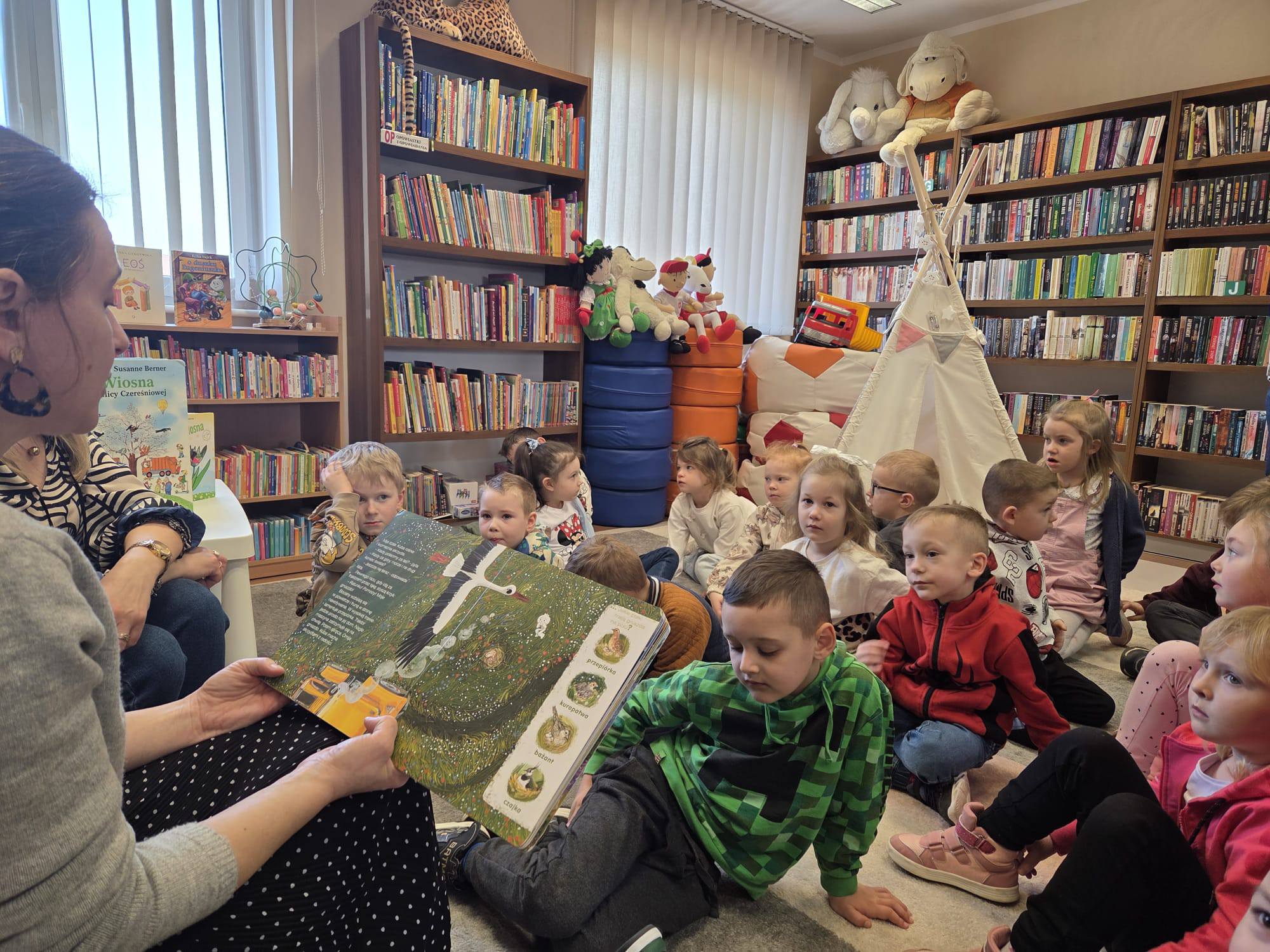 10 marca dzieci z grupy Motylki wybrały się do biblioteki posłuchać pięknej historii zatytułowanej „Bocian z łąki” – opowieści o bocianie i jego rodzinie. Z zaciekawieniem przenieśliśmy się w świat ptasich opowieści.